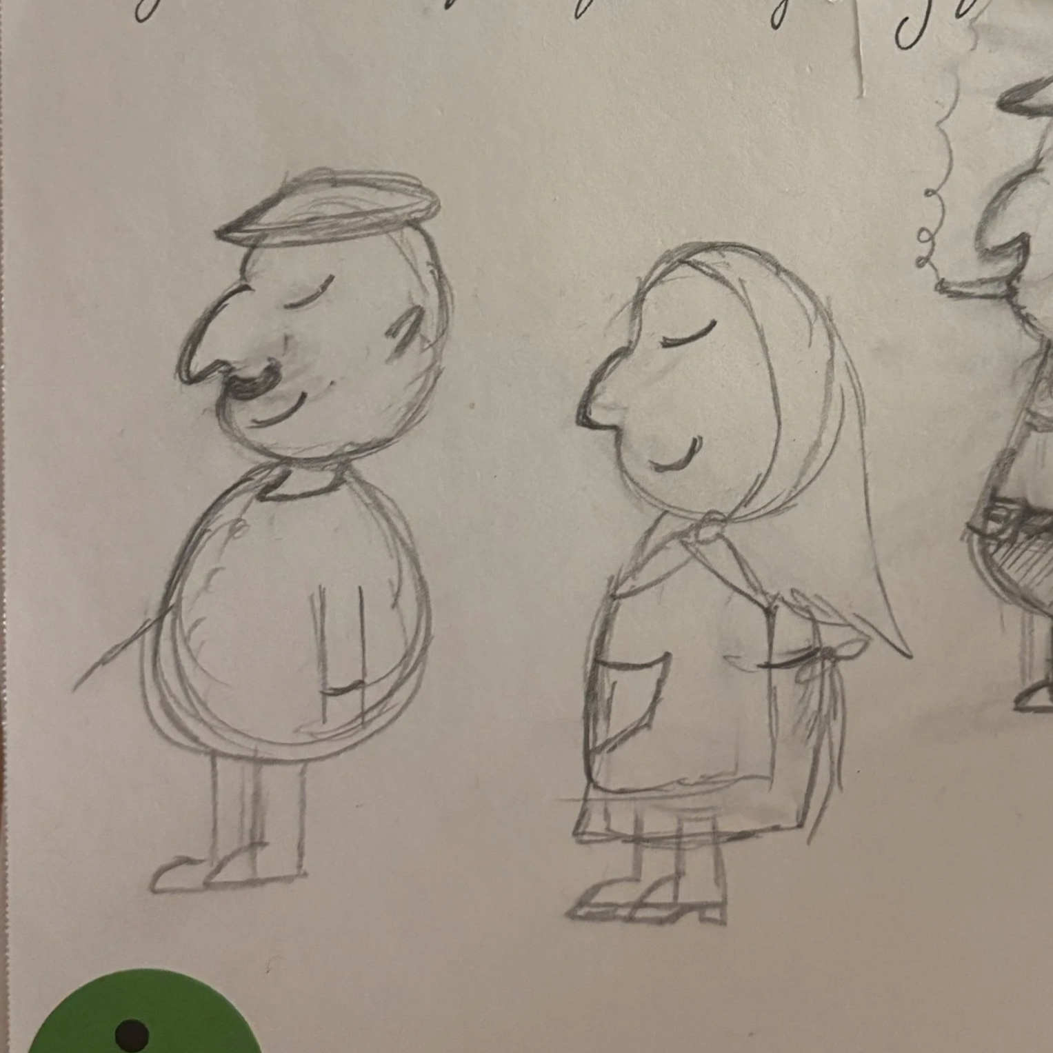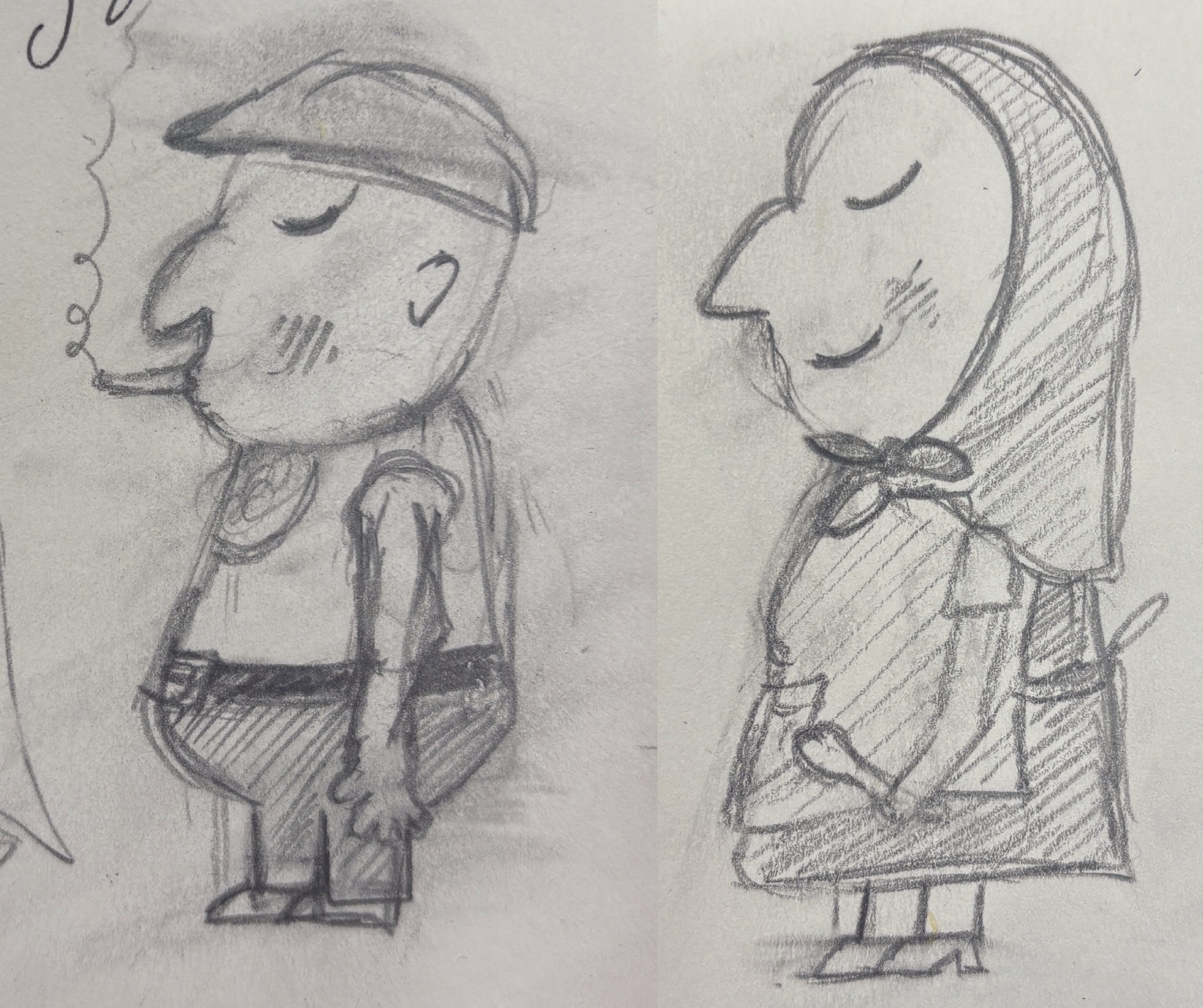 A big part of this project for me was the imagery of Nonna and Nonni. I played into Italian American stereotypes I have witnessed throughout my upbringing. Starting with pencil and paper, I played with proportions and basic forms.
